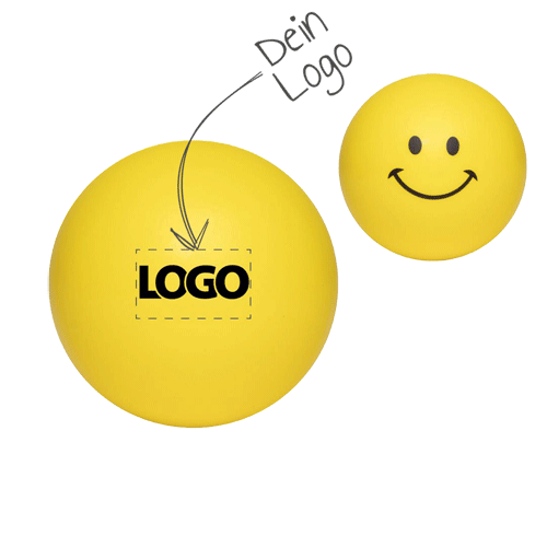 Anti Stressbälle mit Smiley mit Logo Druck für freudige Momente im Büro, zu Hause, in Schulen ….