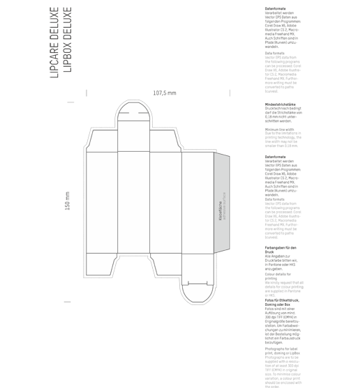 Die Lipcare Deluxe Lippenpflegestifte veredeln wir mit einer Gravur. Zur Gestaltung benötigen eine vektorisierte Datei (EPS, AI oder PDF) mit Deinem Logo. Anschließend erhältst Du eine Freigabezeichnung von uns. Gerne konfektionieren wir bedruckte Lippenpflegestifte in Werbetaschen oder zu anderen Werbemitteln. Wir liefern die fertig individuell bedruckten Werbeartikel in handlich verpackt, sicher und pünktlich in alle EU-Länder.