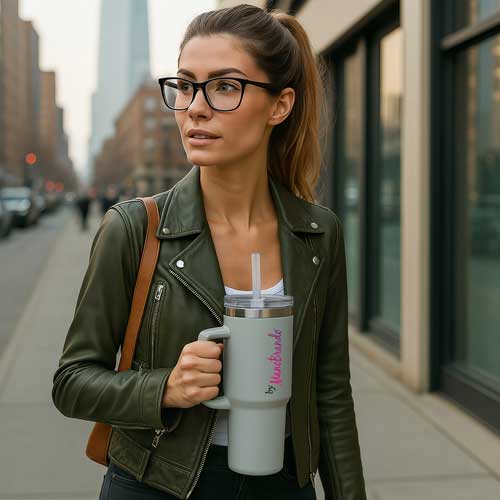 Lifestyle-Geschenk: Als Marken- oder City-Becher mit coolem Design wird er schnell zum Lieblingsbegleiter – ähnlich wie ein Stanley Cup, nur eben individuell auf Deine Marke gebrandet.