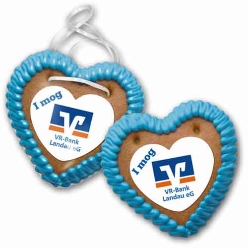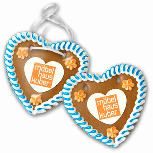 Lebkuchenherz mit Marzipan-Aufleger und Logo | Werbeartikel