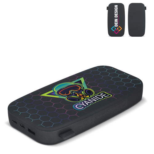 Wir mögen dieses Modell besonders, weil es typische „Low-Budget-Powerbanks“ klar hinter sich lässt. Wer sie bekommt, spürt sofort den Mehrwert: spürbar schnelleres Laden, hohe Kapazität, wertige Haptik und ein Design, das nach hochwertigem Tech-Gadget aussieht – nicht nach einfachem Giveaway. Damit eignet sie sich perfekt als Premium-Werbegeschenk für wichtige Kunden, Führungskräfte, Key Accounts oder als Teil exklusiver Onboarding-Pakete für Mitarbeitende.