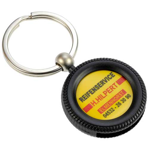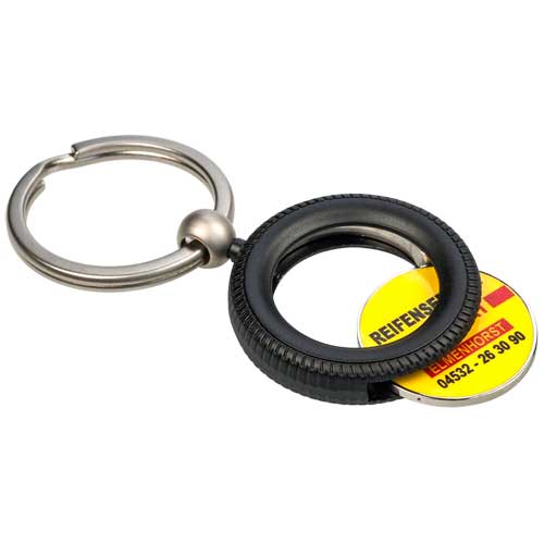 Schlüsselanhänger Autoreifen mit Einkaufswagenchip bedrucken | Werbeartikel