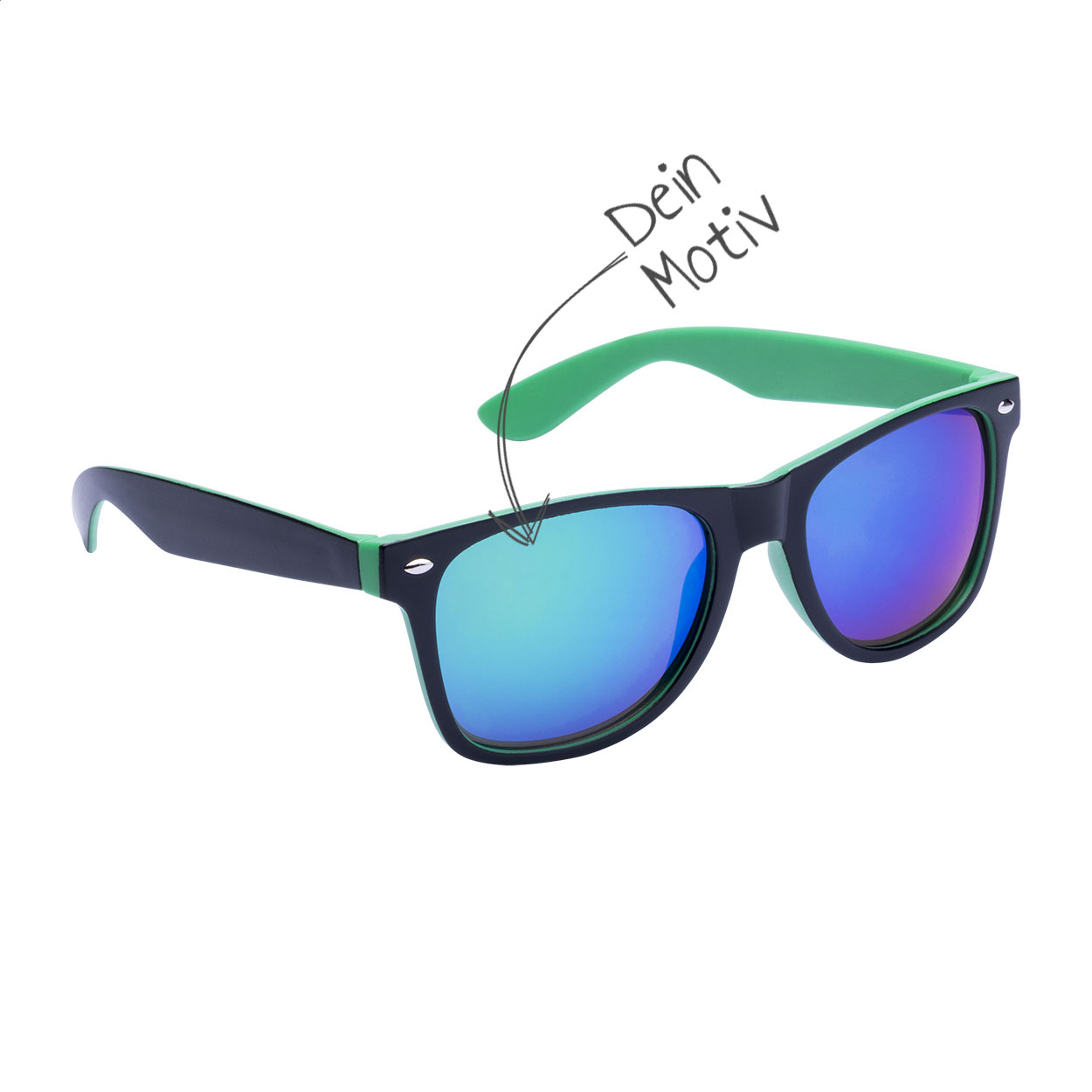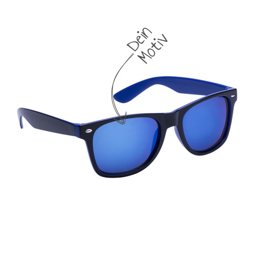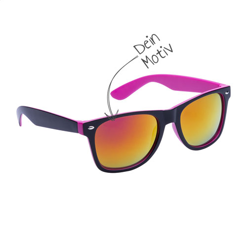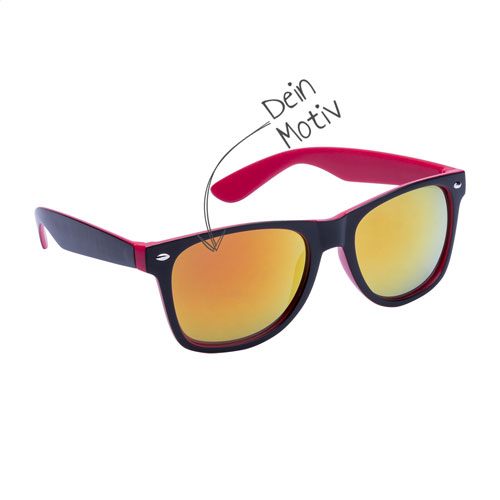 Die Sonnenbrille aus robustem Kunststoff mit zweifarbigem Rahmen, verspiegelten Gläsern und UV-400-Schutz ist wie gemacht für aufmerksamkeitsstarke Werbeaktionen. Dank Motivdruck auf den Gläsern und zusätzlichem Druck auf den Bügeln verwandelst Du sie in eine mobile Werbefläche mit maximalem Branding-Effekt – perfekt für Festivals, Sommer-Events, Promotions oder als cooles Giveaway. Dein Logo, Claim oder Motiv ist direkt im Blickfeld und begleitet Deine Zielgruppe bei Sonnenschein überall hin.